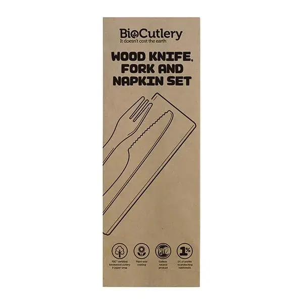 BioPak’s wooden cutlery is an eco friendly alternative to traditional disposable plastic cutlery. The beautifully crafted birch cutlery is a stylish, affordable, eco-friendly disposable set perfect for your next picnic, office or dinner party, special event, wedding, or for your cafe or restaurant. Made from natural wood, BioPak's range of wooden cutlery will biodegrade and will not pollute or damage the environment. This range is carbon neutral and are industrially and home compostable.