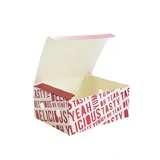 Our Cardboard Snack Boxes pop with the Tasty Food design in Junior size. They're engineered to make a lasting, positive impression. This eye-catching junior box is designed with both security and style in mind. Its bright white exterior is completely covered with impactful, fun red typography featuring appetite-inducing words like "TASTY," "YUMMY," and "DELICIOUS," turning every box into a dynamic advertisement for your culinary creations.