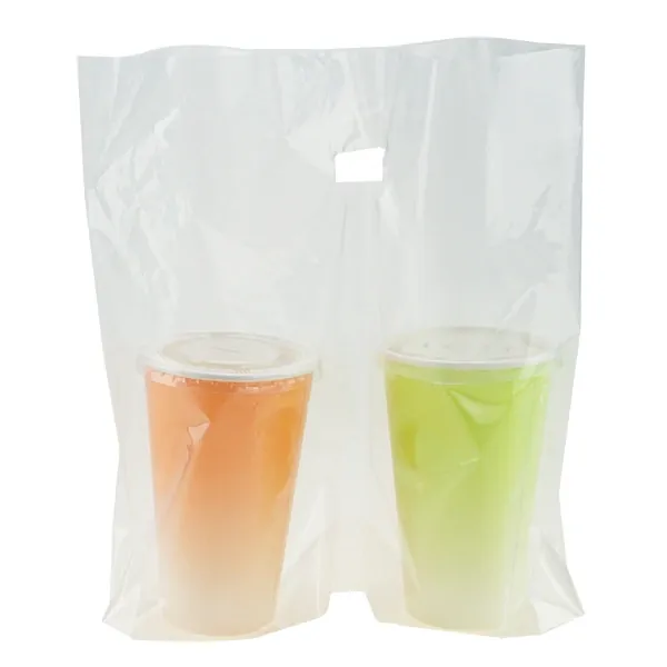 Our HDPE Double Cup Plastic Carry Bag is the perfect solution for on-the-go customers purchasing multiple beverages at a time. Made from high-density polyethylene (HDPE), this plastic carry bag is specifically designed to securely hold two cups, providing convenience and ease for customers on the go. It is the ideal choice to store hot coffee and bubble tea. With enough room to accommodate various cup sizes, these carry bags are versatile and practical for a wide range of establishments from cafes, food trucks, bubble tea stores and pop-up stalls to dessert shops.